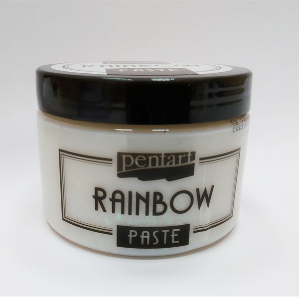 Flexible water based Rainbow effect paste that is dries either transparet oropalascent, containing holographic pigments that mysteriously glint, creating an ice effect. The effect differs on light and darc surfaces, but it is impressive anyway. It can be applied on any surface, excellent for stencil technique.